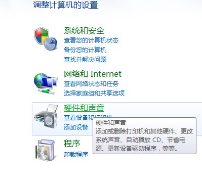 1、打开电脑,找到控制面板(就在开始菜单里面),找到“硬件与声音”,打开它。