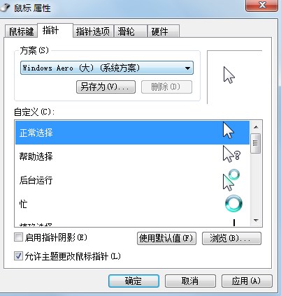 3、这个页面是设置鼠标指针的,可以设置指针风格等。