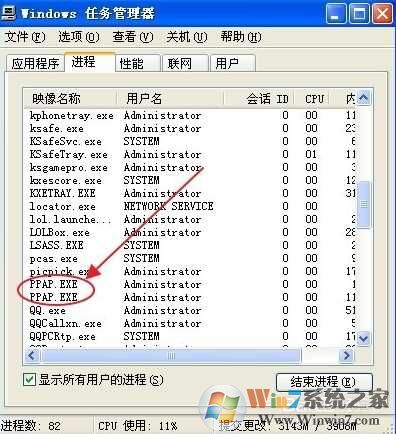 3、结束PPAP.EXE进程然后。删除PPAP.exe,安全软件清理注册表。