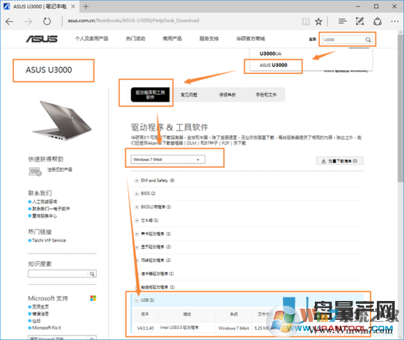 1、下载某一机型Windows7系统下的的USB3.0驱动,我们以U3000为例: