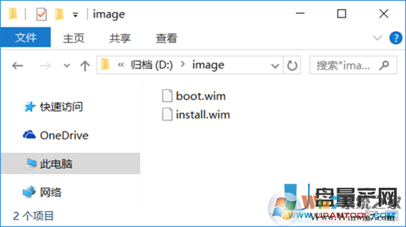 6、复制win7系统光盘镜像 sources 文件夹中的 boot.wim 和 install.wim 到 d:\image(官方下载的win7 iso镜像用winrar打开就能找到这2个文件,直接拷贝出来)