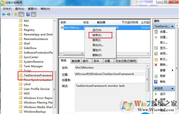 3、在主窗口出现的”MsCtfMonitor”上右击”结束”然后再点击”是”即可。