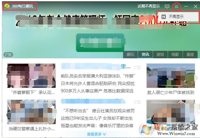 1、首先在弹出360每日趣玩时,大家可以点击右上角的近期不再显示或,不再显示按钮,那么这个弹窗将会有一段时间不会出现。