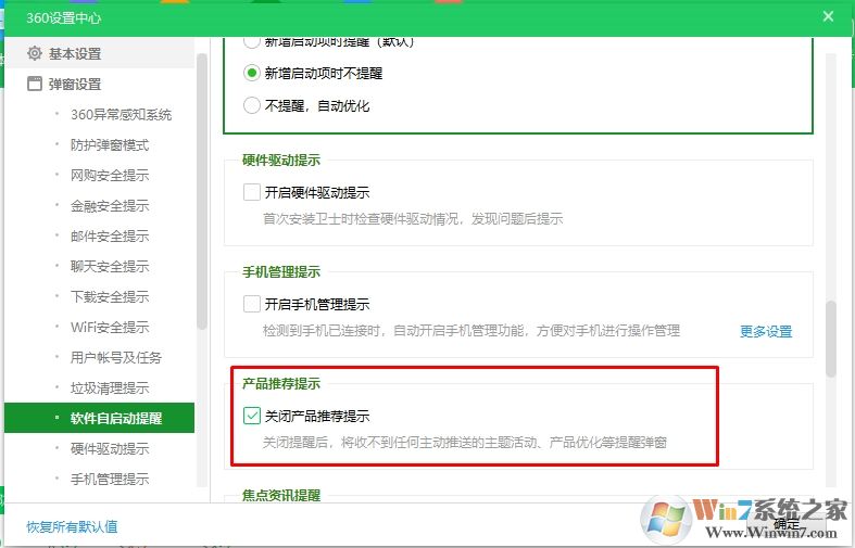打开360安全卫士设置,然后在弹窗设置中,我们找到关闭产品推荐提示,勾选后确定!
