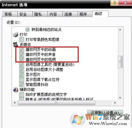 3、勾选图中红色方框中所示的“播放网页中的声音”,保存。