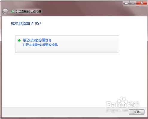 7、连接添加完成后,我们还可以进行无线网络设置 点击 更改连接设置 就可以了!如下图: