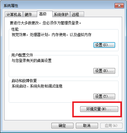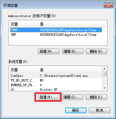 选择“环境变量(N)...”按钮,出现“环境变量”对话框,如图