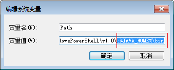 在变量值的最后,加上 ;%JAVA_HOME%\bin 注意前面的分号,确定,即可。