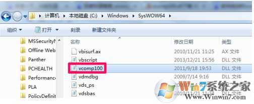 3、如果是64位的系统,就打开计算机找到目录C:\Windows\SysWOW64,然后把vcomp100.dll复制到里面。而64位的vcomp100.dll则复制到C:\Windows\System32 下
