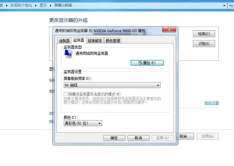 2、系统刚装完时大多默认是60HZ的,这个适合笔记本用,台式机用这个刷新率一般屏幕都在闪屏,看久了对眼睛也不好,所以台式机一般都是设置为75或是85HZ。