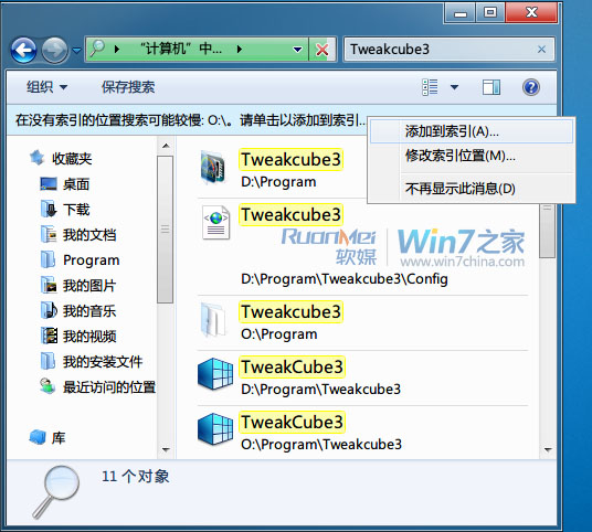 到此,索引就完成了,就是这么简单。在Win7系统中通过自定义索引目录,可以让查找文件变得更快更准。