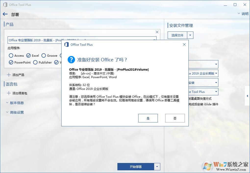 Win7下安装Office2019安装方法如下: