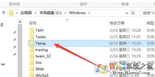 1、打开Windows10的系统盘,然后找到Windows\Temp文件夹