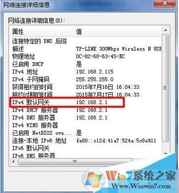 如何确定路由器的设置网址有没有被修改呢?只需要查看下电脑上获取到的IP地址信息就可以知道了,期中的默认网关地址,就是无线路由器的设置网址,如下图所示,小编路由器的设置网址已经被修改为:192.168.2.1了。这时候需要在浏览器中输入192.168.2.1,才能打开路由器的设置页面了。