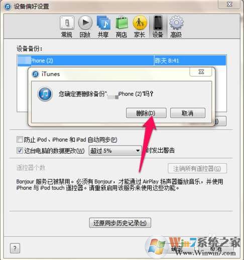 方法二:在itunes中删除备份