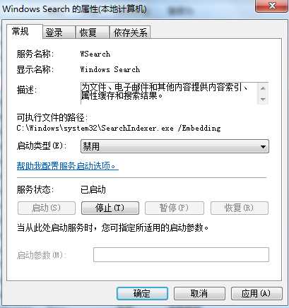 PS:禁止win7 Windows Search服务后将无法使用索引功能,搜索也会变慢,如果你需要使用搜索就不要禁用它。