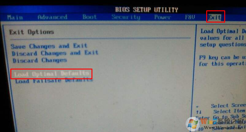 2、按键盘右方向键选择到最后一项,在里面找到Load Optimized Default这个选项然后回车键--按Y确定