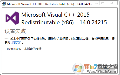 VC2015运行库是很重要的组件,在运行很多软件时都会需要它,那么安装VC++2015运行库时出现0x80240037提示时如何解决?