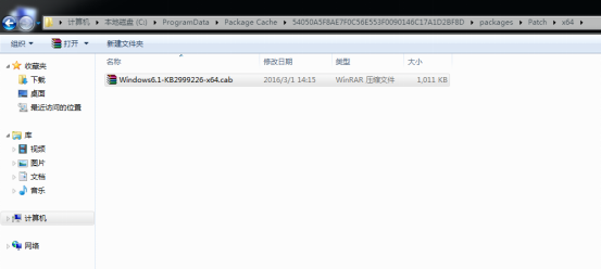 1.打开计算机,搜索Windows6.1-KB2999226-x64.msu这个文件,打开所在的文件夹