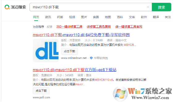 3.打开浏览器,搜索缺少的DLL,下载对应版本的DLL