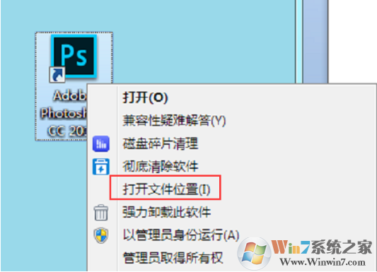 3.鼠标右键桌面报错软件的桌面快捷方式,点击打开文件位置