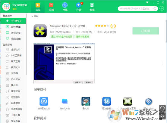 1.360软件管家上搜索“Microsoft DirectX 9.0C 正式版”下载并安装