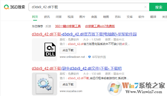 1.浏览器搜索缺失的dll文件,此时需要注意:不管你的操作系统是32位的还是64位的,都需要下载32位的dll文件。