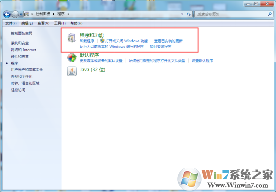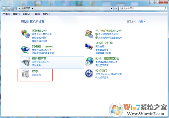 3.打开电脑的控制面板,进入程序选项,选择程序与功能