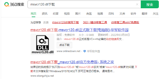 1.在浏览器中搜索msvcr120.dll文件并下载解压