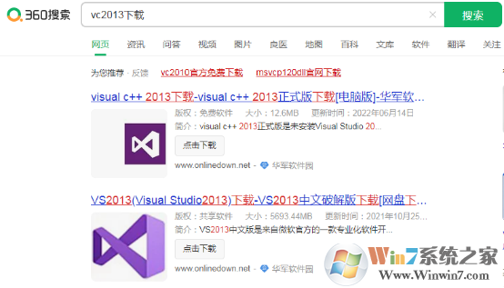 2.打开浏览器搜索对应版本的VC++运行库2013并安装