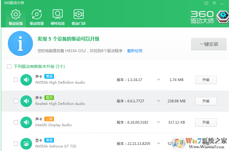 如pointing device出现感叹号或者红叉的标志,则说明驱动有问题,我们需要重新安装驱动了,可到官网下载或者使用360驱动大师驱动