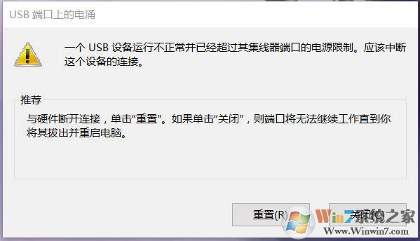 Win7一个USB设备运行不正常并已经超过其集线器端口的电源限制解决方法