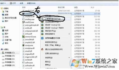 (你也可以在C:\Windows\System32目录下找到这个cmd.exe,同样右键它,以管理员身份确定。)