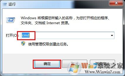 1.按win键+r键打开运行窗口,然后输入cmd并按下回车键,如下图所示