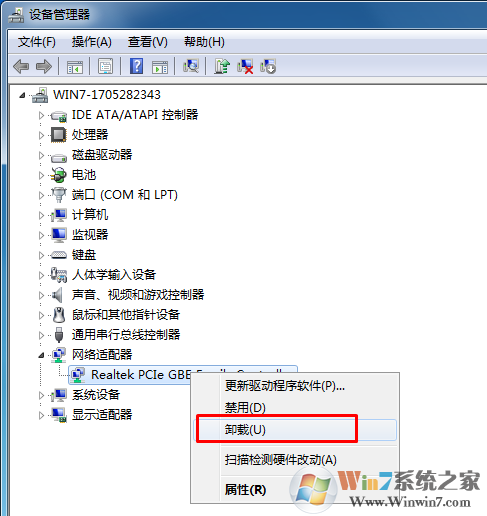 2、做好准备工作之后进入设备管理器卸载网卡的驱动程序