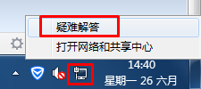 右键网络图标选择疑难解答、然后按照提示的步骤操作即可