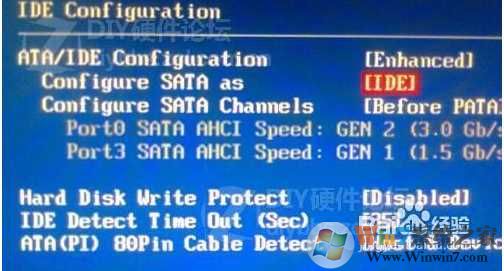 方法2、在主板BIOS中将硬盘模式从ACHI或SATA更改为IDE模式,具体详见: