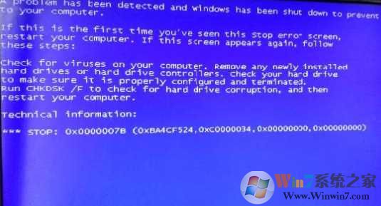 有些硬盘能用只是不稳定,有时会自动掉电,通常会听到硬盘停止旋转的声音,在启动时遇到硬盘停上工作也会出现0x000007b蓝屏。