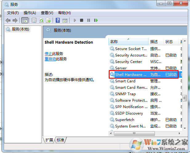 2、在服务中找到Shell Hardware Detection服务,