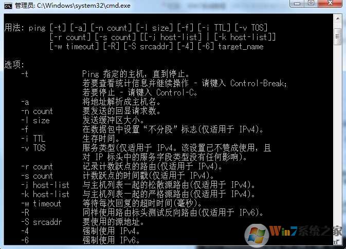 参数可以对命令的功能进行扩展,ping命令的参数比较多,常用的主要有以下几个: