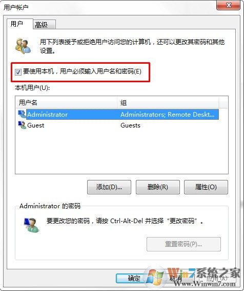 3、将“要使用本机,用户必须输入用户名和密码”选项前的勾选去掉,点击"应用"——"确定"即可。