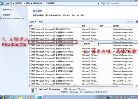 (2)按下图操作卸载已经安装的 KB2839229、KB2838727 补丁后并删除C:WindowsSoftwareDistributionDownload下的所有内容后重启即可,如图: