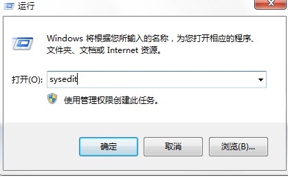 1、点击win7桌面开始按钮,找到运行对话框,然后输入“sysedit”,回车打开“系统配置编辑程序”界面;