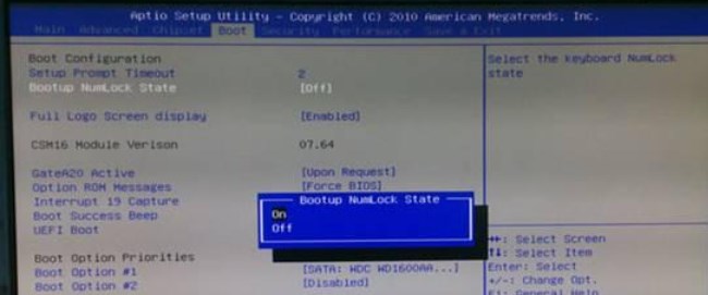 1、在电脑开机的时候按F2进入BIOS设置界面,在BIOS中将NumLock项设为ON即可,但是注销用户时NumLock小键盘锁是关闭的,需要手动打开;