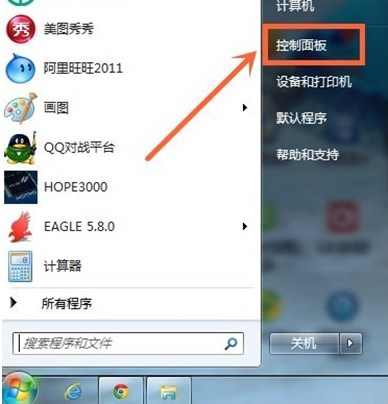 一、首先从Win7开始菜单中,找到“控制面板”,并点击进入,如下图所示: