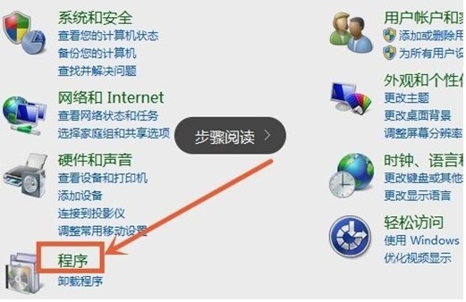 二、进入控制面板之后,我们再找到“程序”设置,如下图所示: