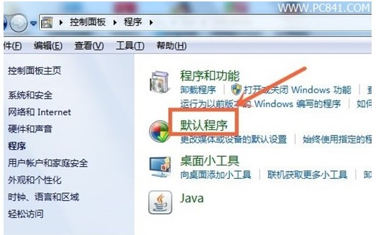 三、进入程序设置后,我们再点击进入“默认程序”设置,如下图所示: