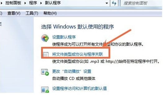六、另外我们还可以“默认程序”设置,选择第二项的“将文件类型或协议与程序关联”,里面可以更改MP3、视频文件的打开方式,如下图所示: