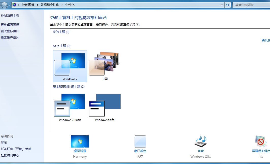 然后,从Win7个性化窗口中随意更换一个主题就可以了。这样,Windows7就会自动更新图标缓存,自然也就解决了这个问题,简单吧。