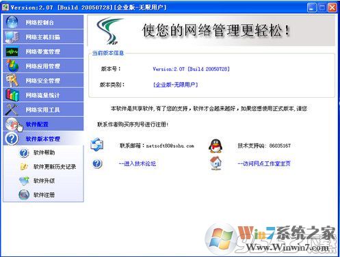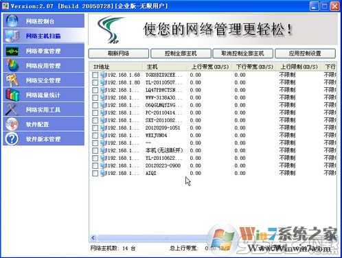 1.可以控制每一台机器的上传,下载的速度,还可以对通常的聊天软件进行限制。
